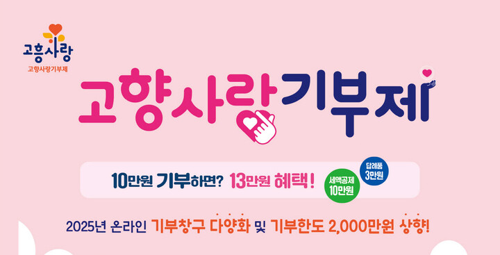고흥군, 고향사랑기부제 소액 기부 모금액 42% 증가