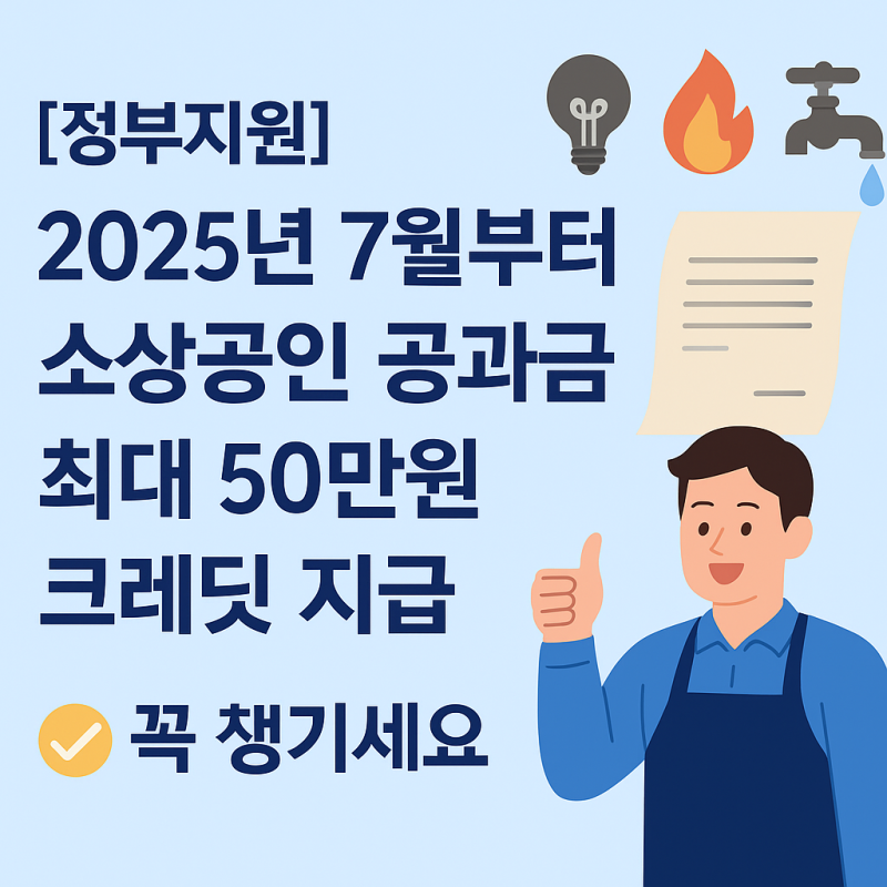 [정부지원] 2025년 7월부터 소상공인 공과금 최대 50만 원 크레딧 지급! 꼭 챙기세요