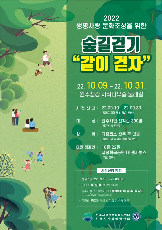 생명사랑 문화조성을 위한 숲길 걷기‘같이 걷자’ 행사 개최 [원주시] 2022년 생명사랑 문화조성을 위한 숲길 걷기‘같이 걷자’ 행사 개최