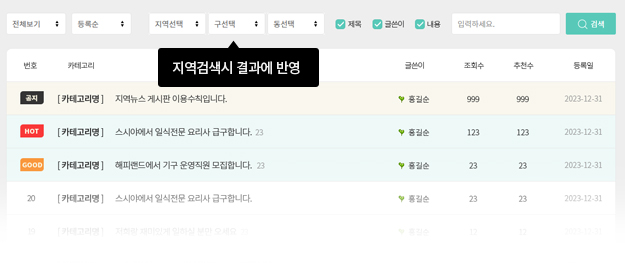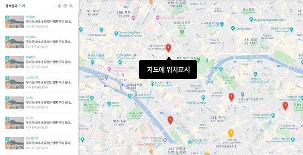 게시글 본문에 지도 및 위치 주소를 출력하거나 와이드 지도 페이지에 게시글을 출력하기 위해서는 위치설정을 해야 합니다.