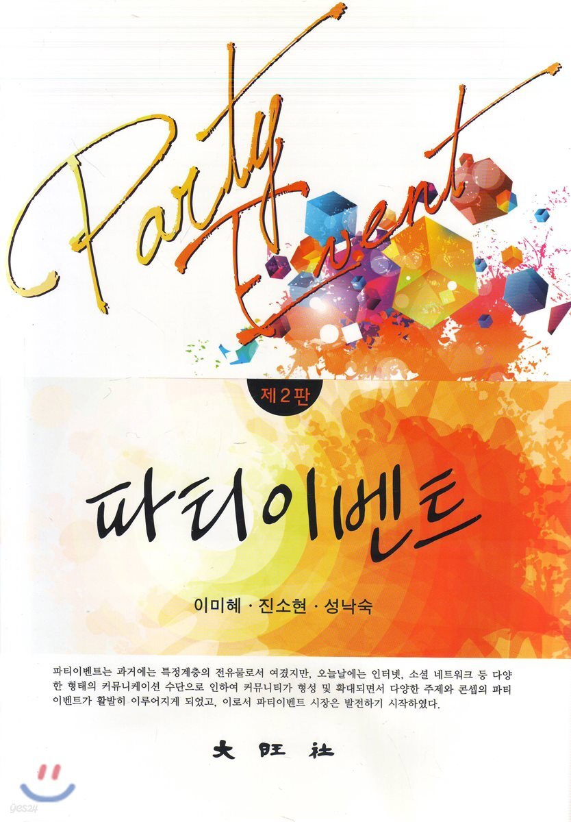 파티이벤트에 대한 전반적인 내용으로 구성한 교재. 저자들은 파티이벤트의 중요성을 인식하면서 지금까지의 다양한 파티이벤트 실무경험과 학문연구를 바탕으로 파티이벤트에 대한 이해를 돕는다. 파티이벤트에 대한 이론과 실무 내용을 다루고 있다.